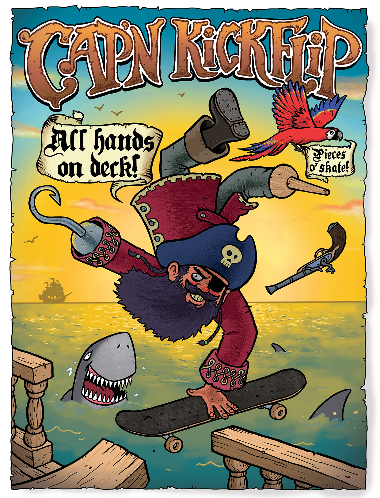 Poster created for a skateboard themed small press publication, featuring work by multiple creators.