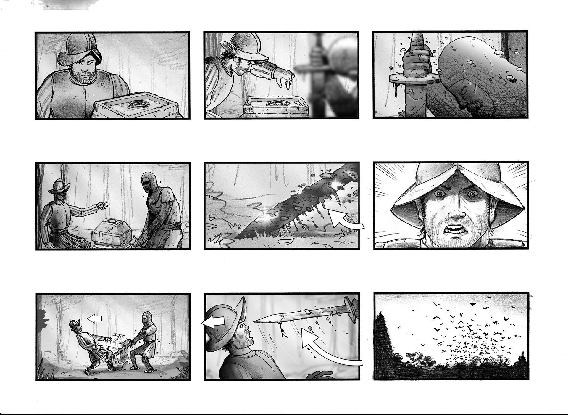 Storyboard created for film 'Grail' written by Tim WIldgoose